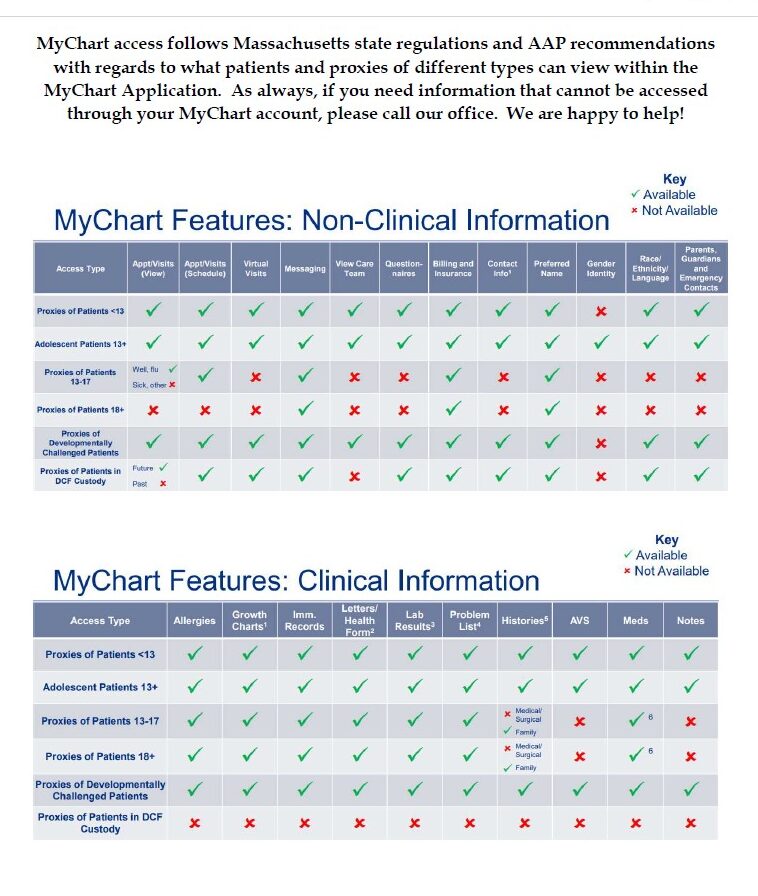 Patients that are 13 years or older will need to create their own MyChart login – parent access is restricted. Patients will need to request their own medication refills, school forms and referrals through the portal.